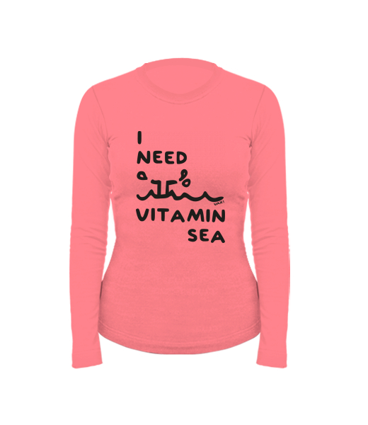 Women's cotton shirt with long sleeves for woman with design 1132 I NEED VITAMIN SEA in color LOSOSOVA