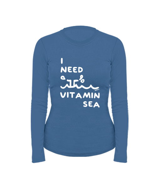 Women's cotton shirt with long sleeves for woman with design 1132 I NEED VITAMIN SEA in color MOONLIGHT BLUE