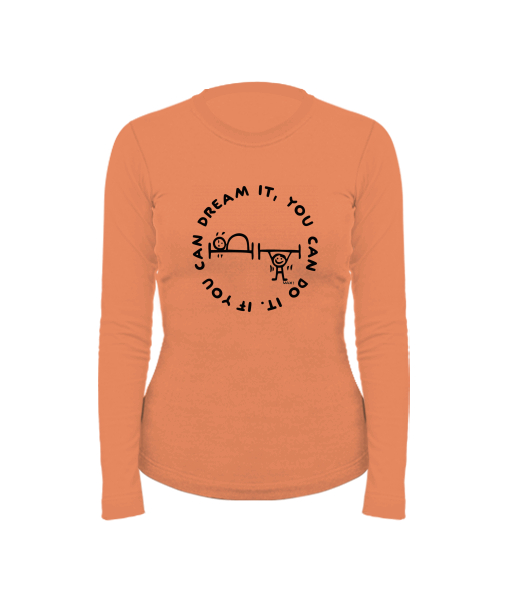 Women's cotton shirt with long sleeves for woman with design 1133 IF YOU CAN DREAM IT in color MANDARIAN ORANGE
