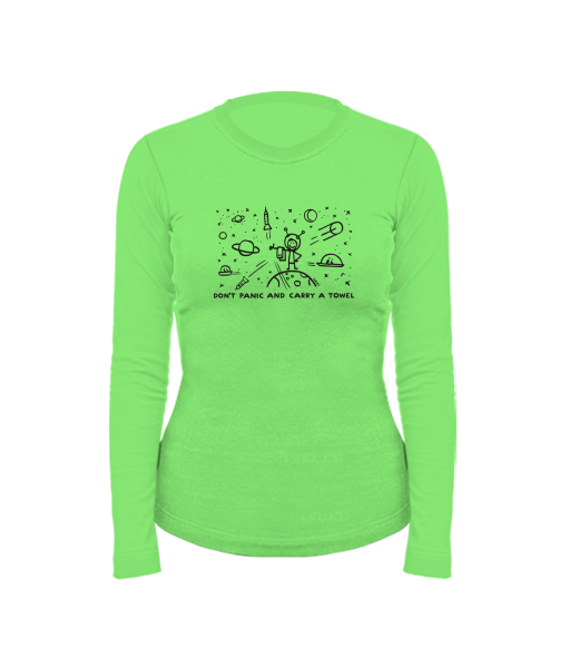 Women's cotton shirt with long sleeves for woman with design 1156 DON'T PANIC GALAXY in color APPLE