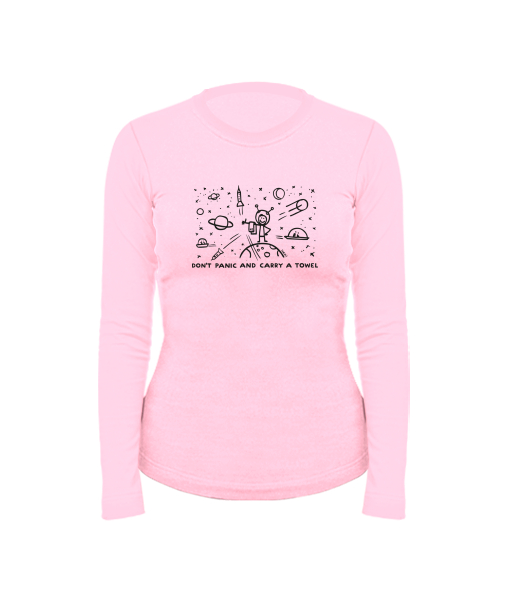 Women's cotton shirt with long sleeves for woman with design 1156 DON'T PANIC GALAXY in color BABY PINK