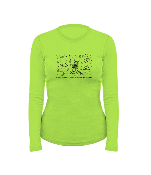 Women's cotton shirt with long sleeves for woman with design 1156 DON'T PANIC GALAXY in color PARROT GREEN