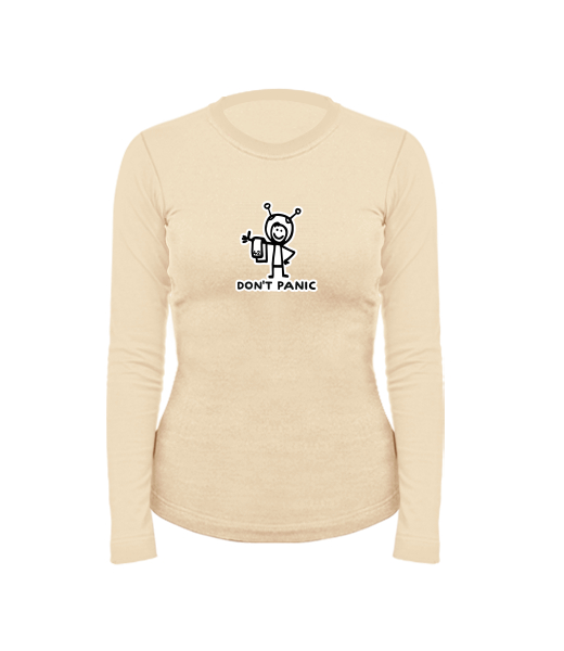 Women's cotton shirt with long sleeves for woman with design 1157 DON'T PANIC in color CARAMEL