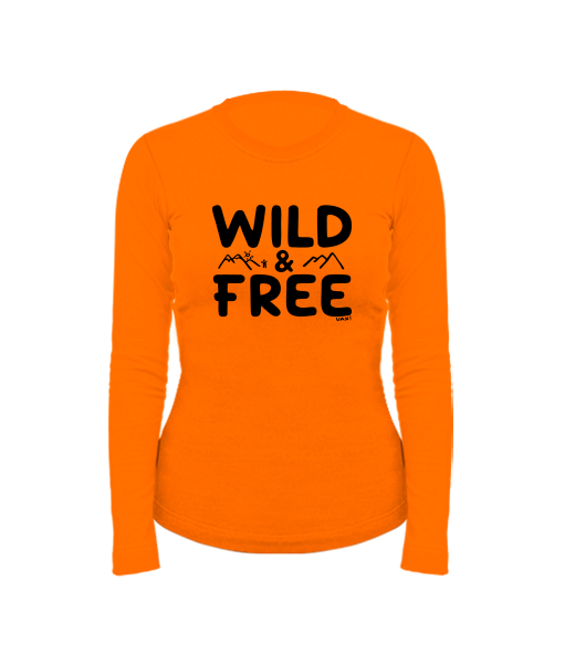 Women's cotton shirt with long sleeves for woman with design 1161 WILD AND FREE in color SIGNAL ORANGE