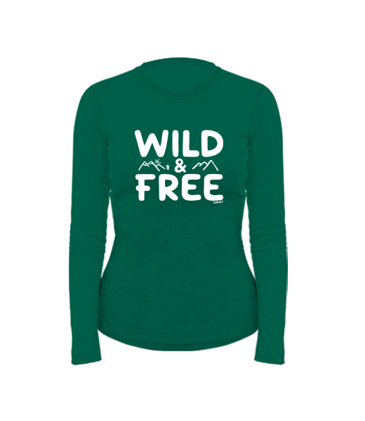 Women's cotton shirt with long sleeves for woman with design 1161 WILD AND FREE in color UNIVERSITY GREEN
