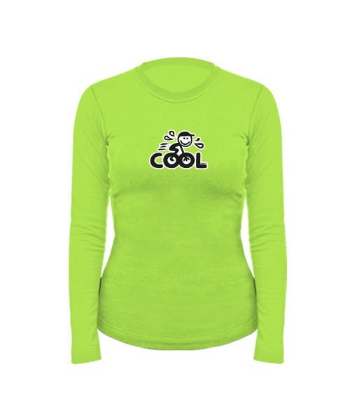 Women's cotton shirt with long sleeves for woman with design 1169 COOL CYCLIST in color PARROT GREEN