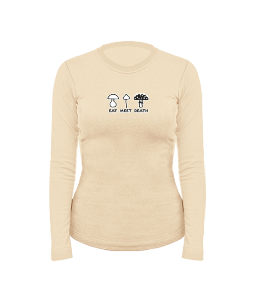 Women's cotton shirt with long sleeves for woman with design 1177 EAT MEET DEATH in color CARAMEL
