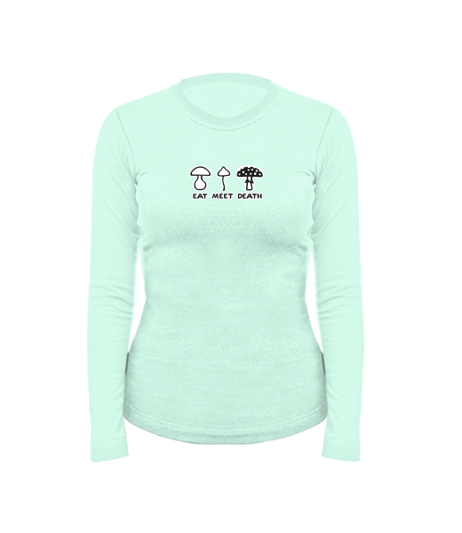 Women's cotton shirt with long sleeves for woman with design 1177 EAT MEET DEATH in color MINT