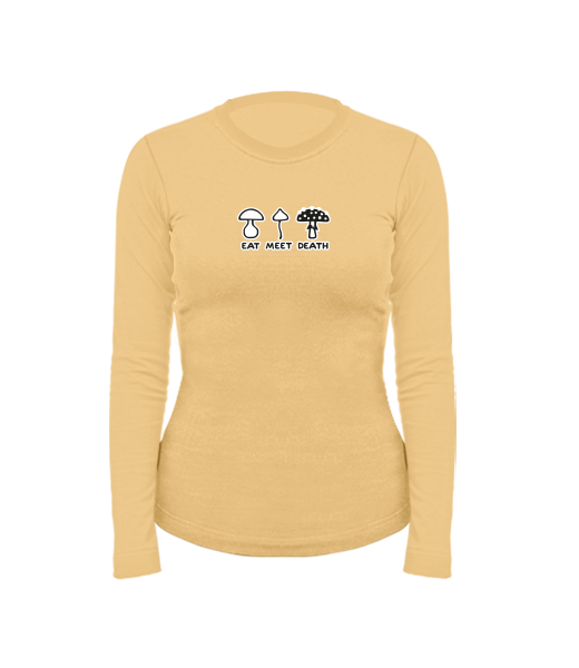 Women's cotton shirt with long sleeves for woman with design 1177 EAT MEET DEATH in color MUSTARD