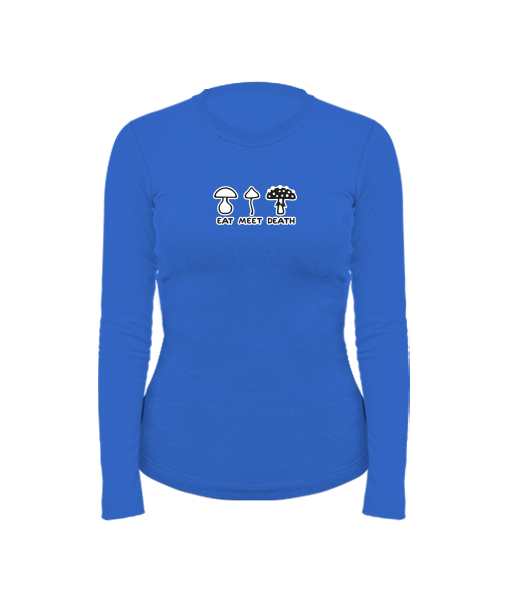 Women's cotton shirt with long sleeves for woman with design 1177 EAT MEET DEATH in color ROYAL BLUE