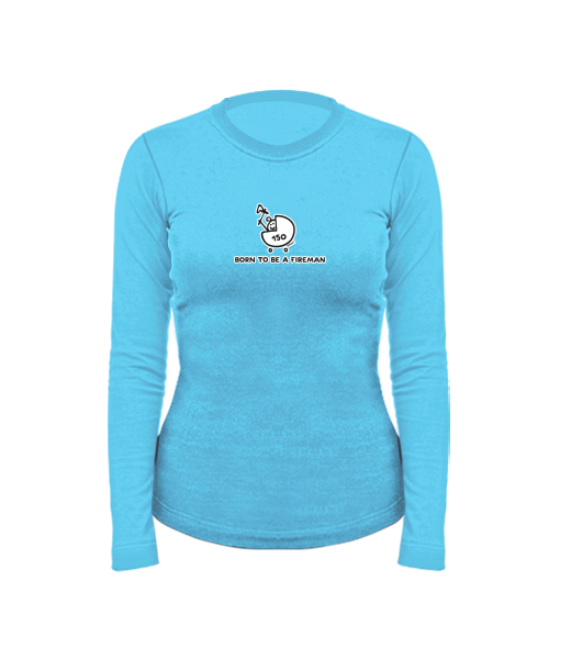Women's cotton shirt with long sleeves for woman with design 1184 BORN TO BE A FIREMAN in color BLUE ATOLL