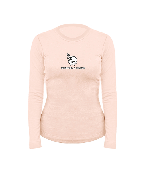 Women's cotton shirt with long sleeves for woman with design 1184 BORN TO BE A FIREMAN in color CAPPUCINO