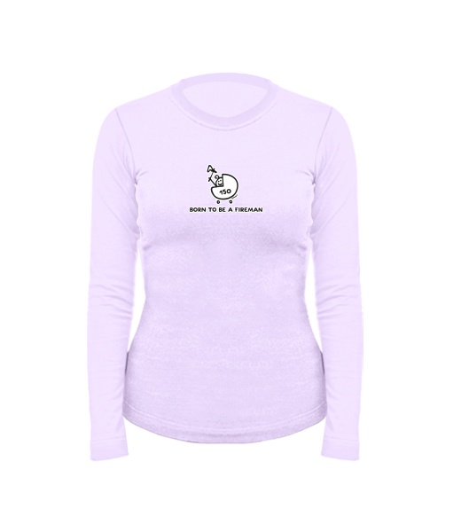 Women's cotton shirt with long sleeves for woman with design 1184 BORN TO BE A FIREMAN in color LAVENDER