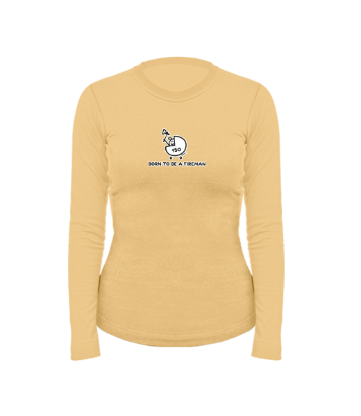 Women's cotton shirt with long sleeves for woman with design 1184 BORN TO BE A FIREMAN in color MUSTARD