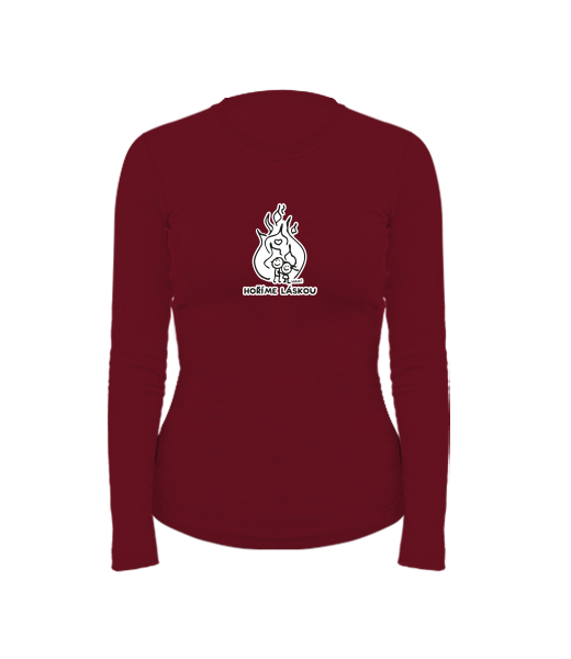 Women's cotton shirt with long sleeves for woman with design 1208 HOŘÍME LÁSKOU in color DARK RED