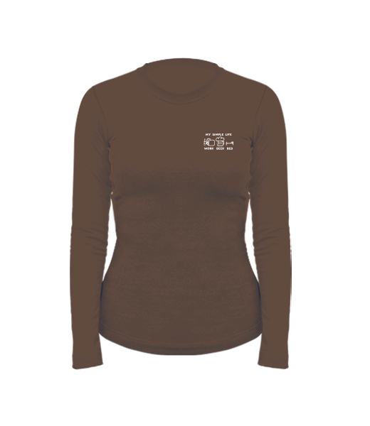 Women's cotton shirt with long sleeves for woman with design 1211 MY SIMPLE LIFE WORK BEER BED in color CHESTNUT
