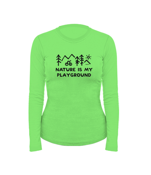 Women's cotton shirt with long sleeves for woman with design 1223 NATURE IS MY PLAYGROUND in color APPLE