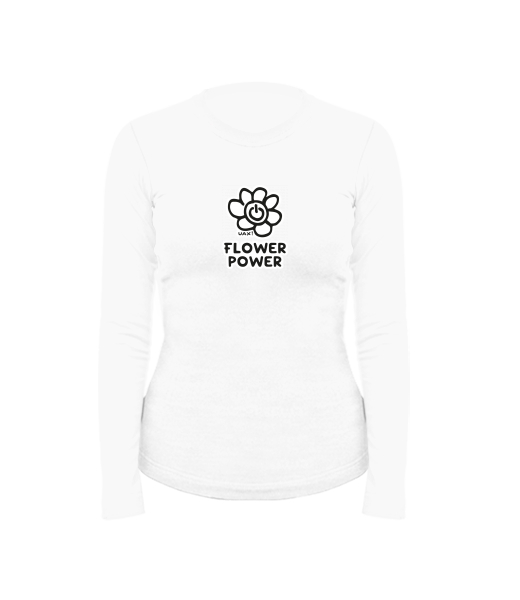 Women's cotton shirt with long sleeves for woman with design 1227 FLOWER POWER in color WHITE
