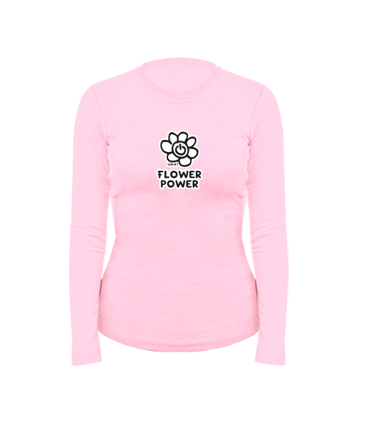 Women's cotton shirt with long sleeves for woman with design 1227 FLOWER POWER in color BABY PINK