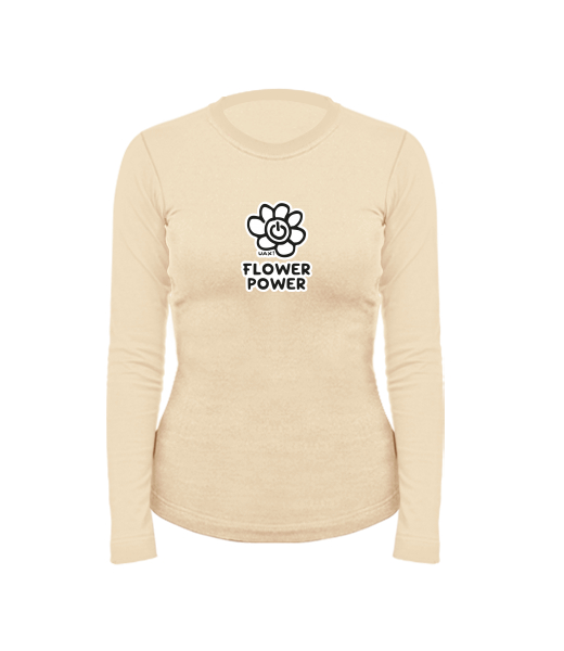 Women's cotton shirt with long sleeves for woman with design 1227 FLOWER POWER in color CARAMEL
