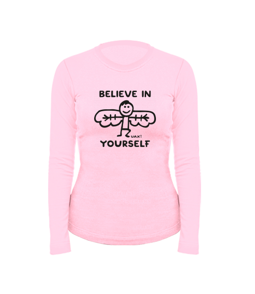 Women's cotton shirt with long sleeves for woman with design 1228 BELIEVE IN YOURSELF in color BABY PINK