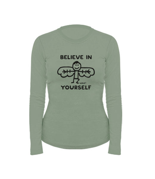 Women's cotton shirt with long sleeves for woman with design 1228 BELIEVE IN YOURSELF in color OLIVA