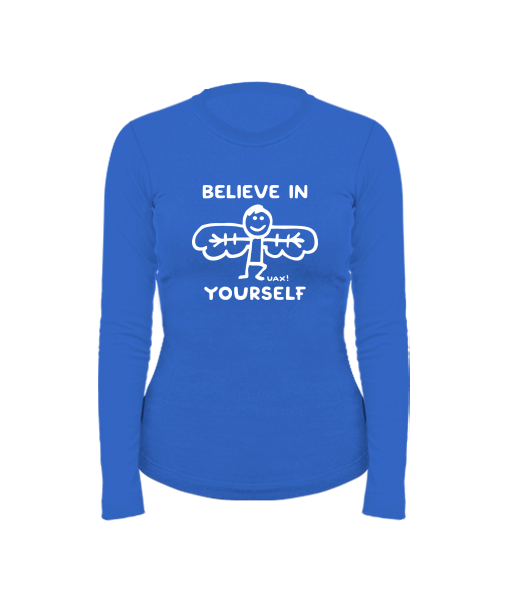 Women's cotton shirt with long sleeves for woman with design 1228 BELIEVE IN YOURSELF in color ROYAL BLUE