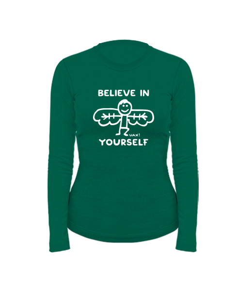 Women's cotton shirt with long sleeves for woman with design 1228 BELIEVE IN YOURSELF in color UNIVERSITY GREEN