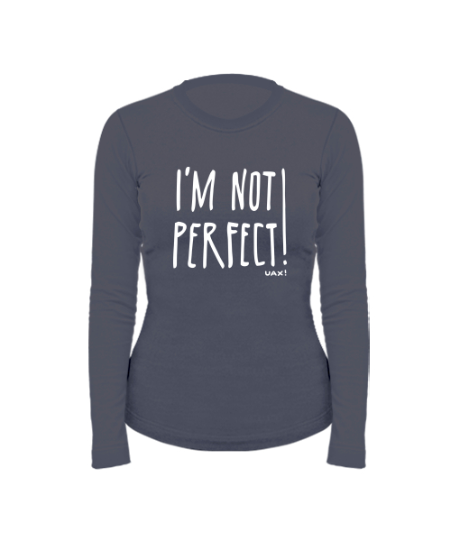 Women's cotton shirt with long sleeves for woman with design 1230 IM NOT PERFECT in color GRAY INK