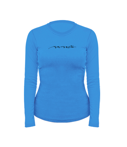 Women's cotton shirt with long sleeves for woman with design 1234 NAMASTE in color CAPRI BLUE