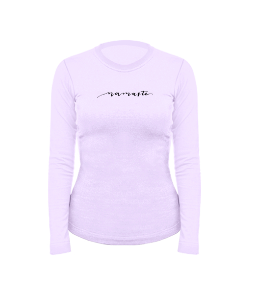 Women's cotton shirt with long sleeves for woman with design 1234 NAMASTE in color LAVENDER