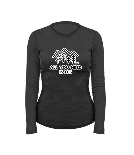 Women's cotton shirt with long sleeves for woman with design 1279 ALL YOU NEED IS LES in color BLACK