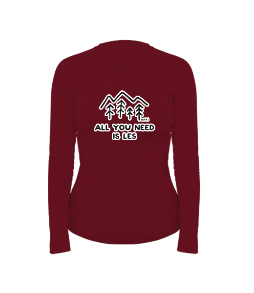 Women's cotton shirt with long sleeves for woman with design 1279 ALL YOU NEED IS LES in color DARK RED