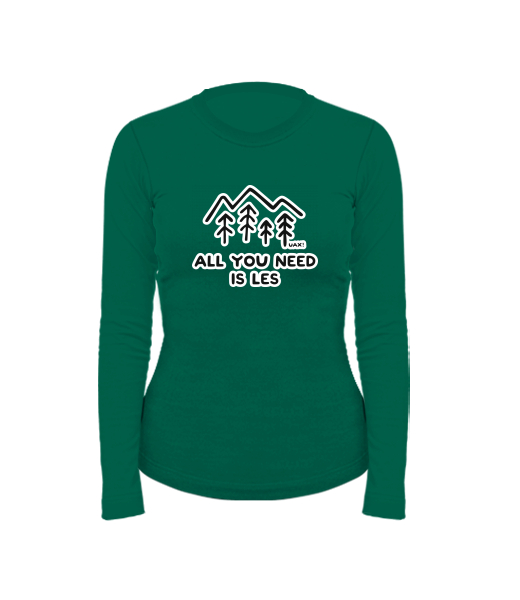 Women's cotton shirt with long sleeves for woman with design 1279 ALL YOU NEED IS LES in color UNIVERSITY GREEN