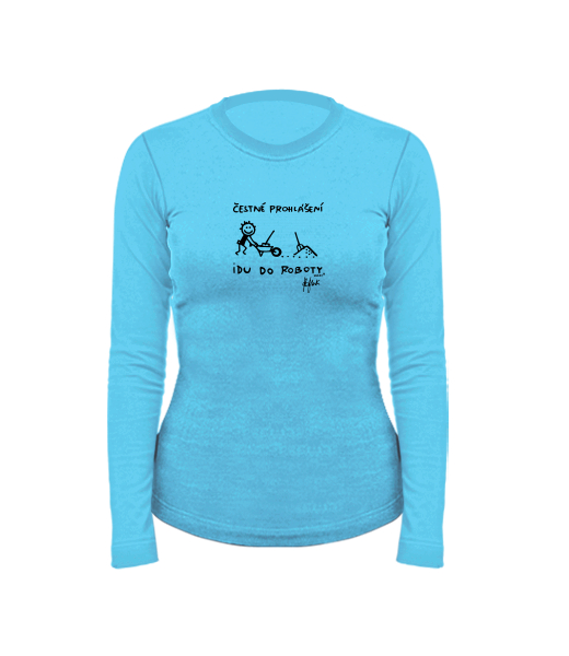 Women's cotton shirt with long sleeves for woman with design 1303 ČESTNÉ PROHLÁŠENÍ IDU DO ROBOTY in color BLUE ATOLL