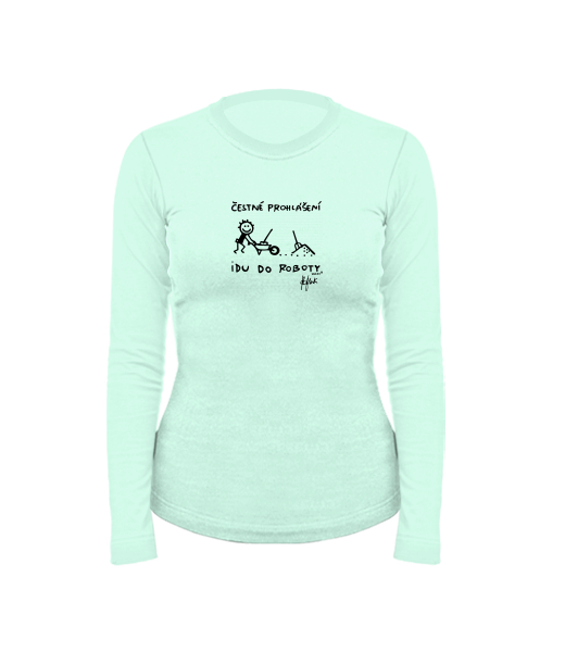 Women's cotton shirt with long sleeves for woman with design 1303 ČESTNÉ PROHLÁŠENÍ IDU DO ROBOTY in color MINT