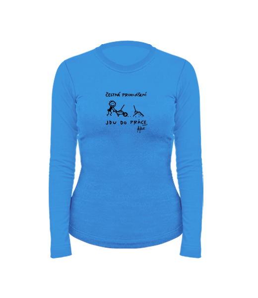 Women's cotton shirt with long sleeves for woman with design 1304 ČESTNÉ PROHLÁŠENÍ JDU DO PRÁCE in color CAPRI BLUE