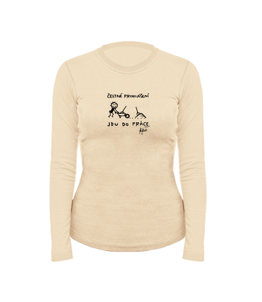 Women's cotton shirt with long sleeves for woman with design 1304 ČESTNÉ PROHLÁŠENÍ JDU DO PRÁCE in color CARAMEL