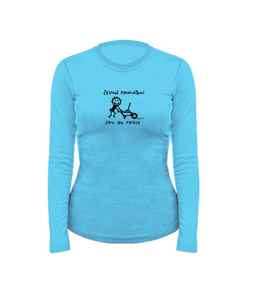 Women's cotton shirt with long sleeves for woman with design 1305 ČESTNÉ PROHLÁŠENÍ JDU DO PRÁCE 2 in color BLUE ATOLL