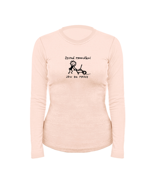 Women's cotton shirt with long sleeves for woman with design 1305 ČESTNÉ PROHLÁŠENÍ JDU DO PRÁCE 2 in color CAPPUCINO