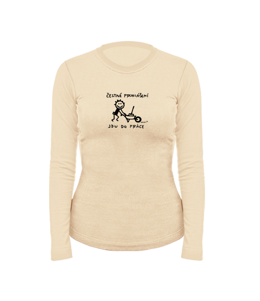 Women's cotton shirt with long sleeves for woman with design 1305 ČESTNÉ PROHLÁŠENÍ JDU DO PRÁCE 2 in color CARAMEL