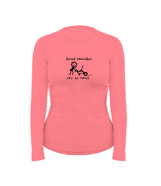 Women's cotton shirt with long sleeves for woman with design 1305 ČESTNÉ PROHLÁŠENÍ JDU DO PRÁCE 2 in color LOSOSOVA