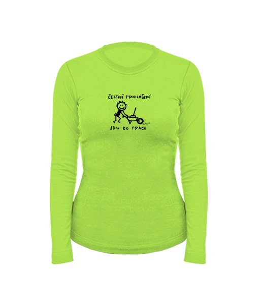 Women's cotton shirt with long sleeves for woman with design 1305 ČESTNÉ PROHLÁŠENÍ JDU DO PRÁCE 2 in color PARROT GREEN