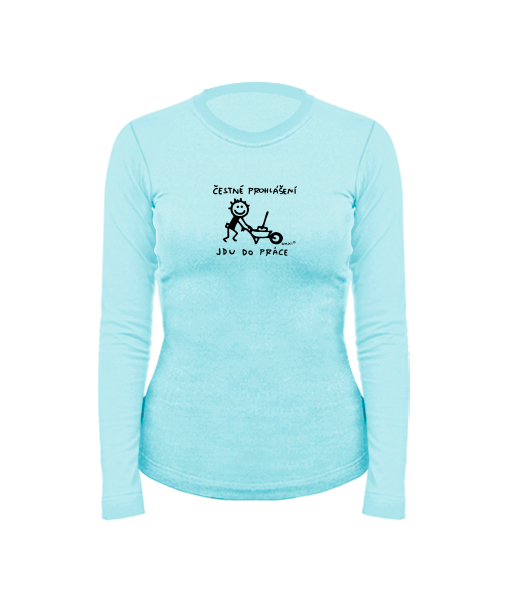 Women's cotton shirt with long sleeves for woman with design 1305 ČESTNÉ PROHLÁŠENÍ JDU DO PRÁCE 2 in color PASTEL BLUE