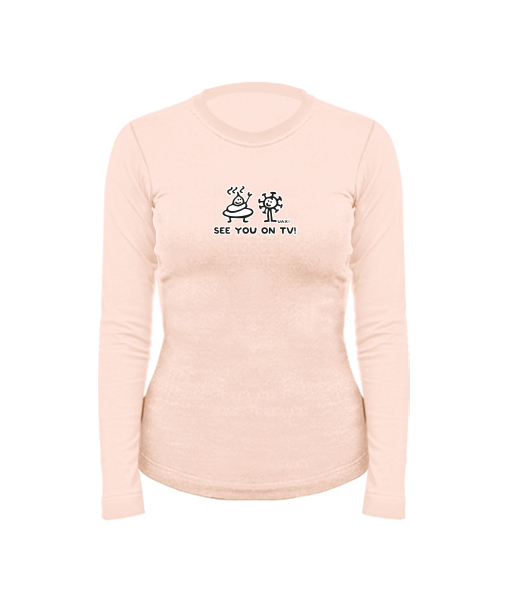 Women's cotton shirt with long sleeves for woman with design 1306 SEE YOU ON TV in color CAPPUCINO