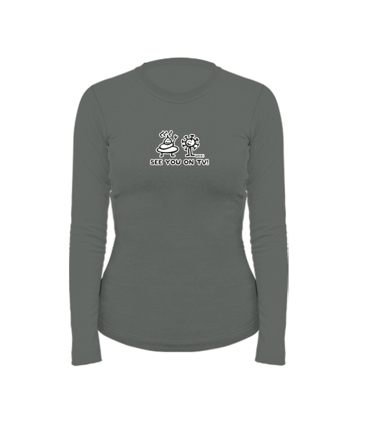 Women's cotton shirt with long sleeves for woman with design 1306 SEE YOU ON TV in color DARK GRAY