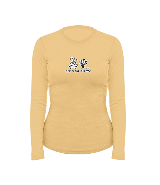 Women's cotton shirt with long sleeves for woman with design 1306 SEE YOU ON TV in color MUSTARD