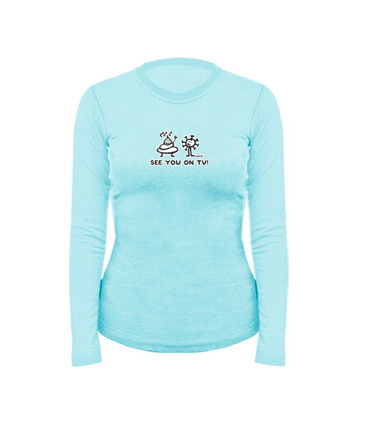 Women's cotton shirt with long sleeves for woman with design 1306 SEE YOU ON TV in color PASTEL BLUE