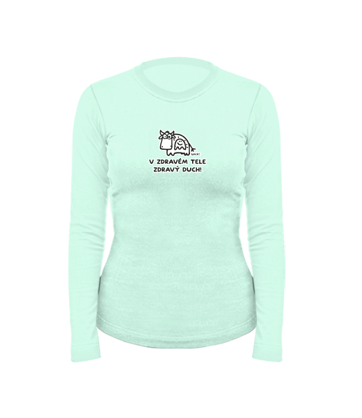 Women's cotton shirt with long sleeves for woman with design 1309 V ZDRAVÉM TELE ZDRAVÝ DUCH in color MINT