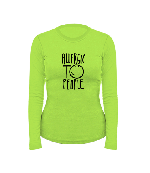 Women's cotton shirt with long sleeves for woman with design 1329 ALLERGIC TO PEOPLE in color PARROT GREEN